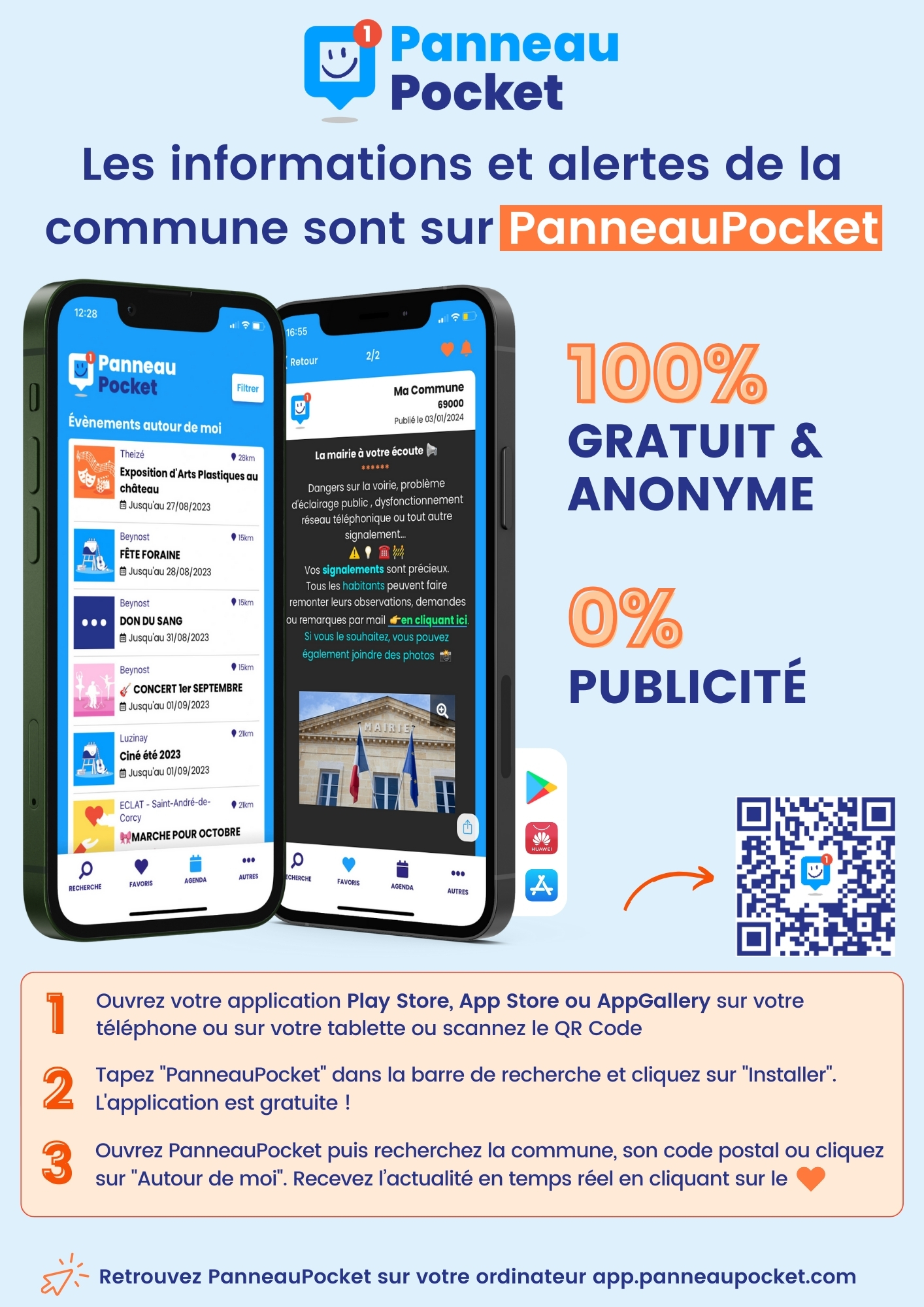 Retrouvez nos visuels personnalisés mis en application par des collectivités PanneauPocket :